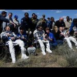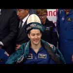 Shortly after landing the crew were welcomed back to Earth in a traditional Kazakh ceremony held for all astronauts who return from space on a Soyuz spacecraft.