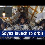 The launch went as planned as the 50-m tall Soyuz rocket propelled the astronauts to their cruising speed of around 28 800 km/h.